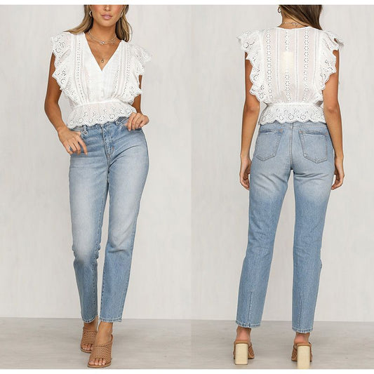 Embroidered Short Cotton Top