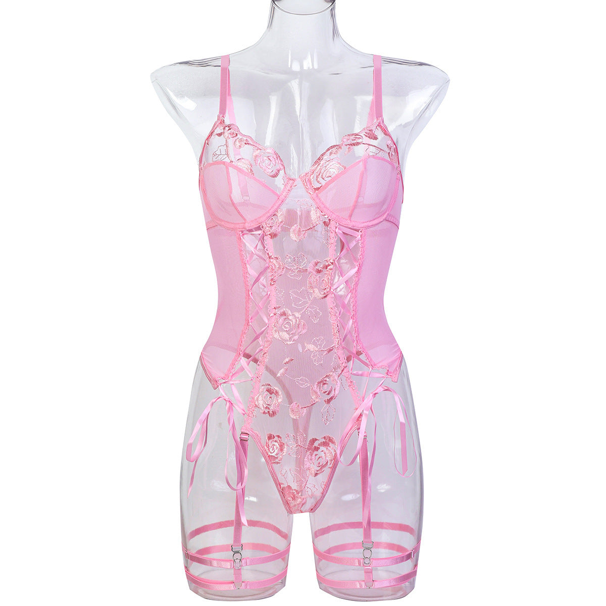 Erotic Red Rose Embroidered Lingerie